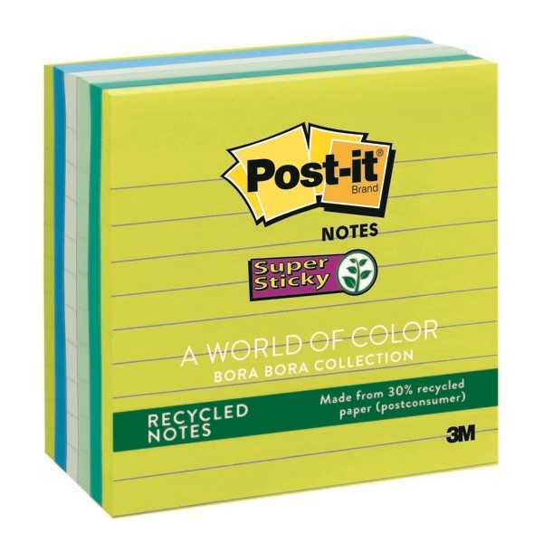 Post It 675-6SST Lined Super Sticky Recycled Notes 101 x 101mm Bora Bora Pack 6