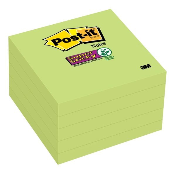Post-it Super Sticky Notes in 76mm x 76mm size support a better future by using recycled paper as no new trees were used