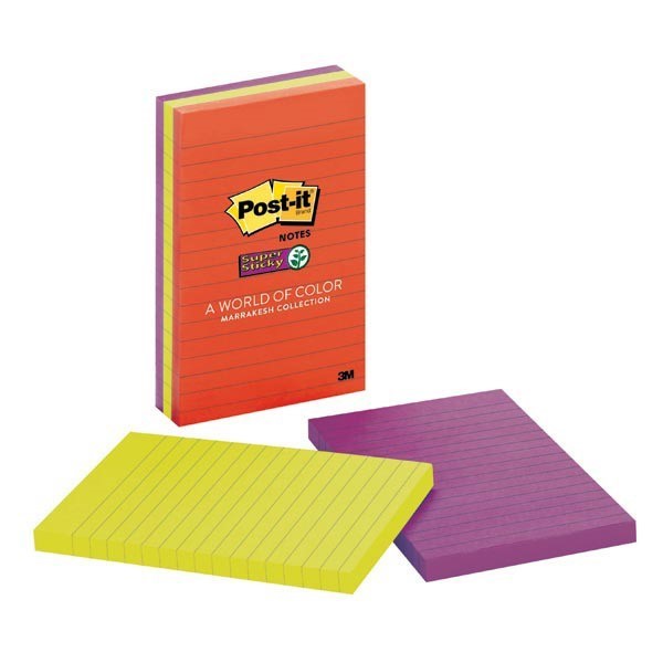 Post It Notes 660 3SSAN 101 x 152mm Super Sticky Lined Marrakesh Assorted Pack 3