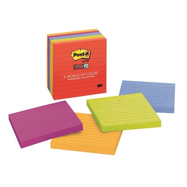 Post It Notes 675 6SSAN 98 x 98mm Super Sticky Lined Marrakesh Assorted Pack 6