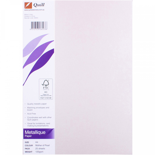 Quill 06003 Metallique Paper A4 120gsm Mother Of Pearl Pack 25