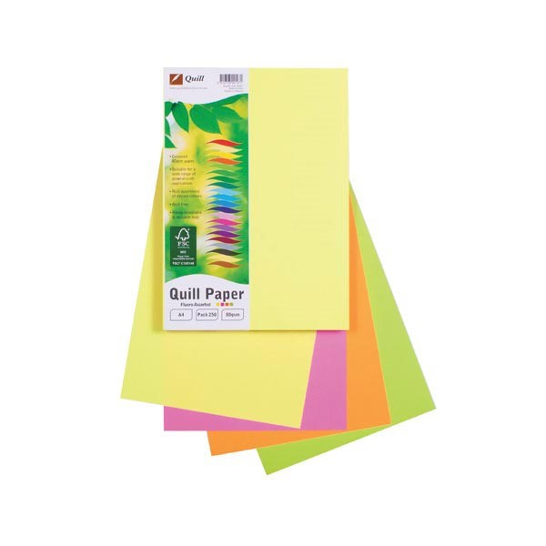 Quill Tinted Copy Paper A4 80gsm Fluoro Assorted Pack 250