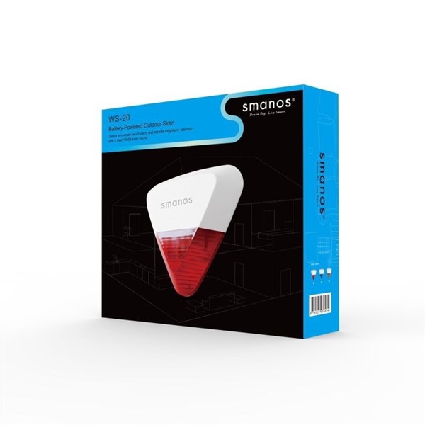 About Smanos Outdoor Siren Smanos Battery-Powered Outdoor Siren is a wireless strobe 105dB siren