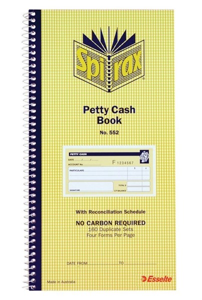 Spirax 552 Duplicate Carbonless 4 to View Petty Cash Book 144 X 272mm