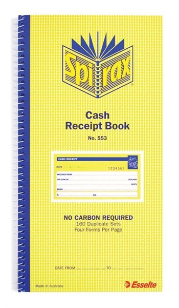 Spirax 553 Duplicate Carbonless 4 to View Cash Receipt Book 144 X 272mm