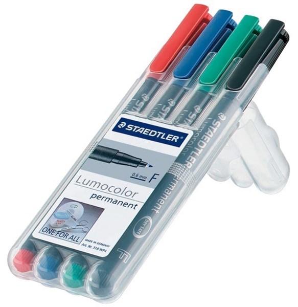 Staedtler 318 WP4 Lumocolor Permanent Pen Fine Assorted Wallet 4