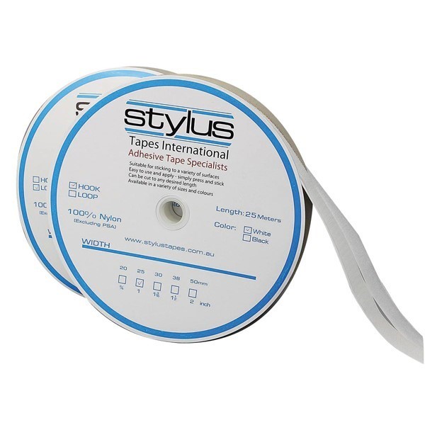 Stylus 3323 Self Adhesive Loop Only 25mm x 25m Roll White