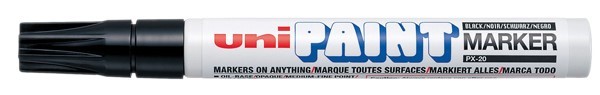 The Uni-Paint permanent paint marker writes on any surface, inside or out, fade proof with vivid colour.