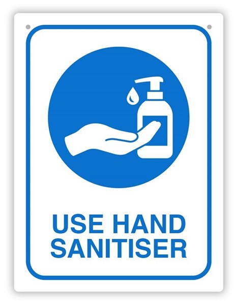 Use Hand Sanitiser Wall Sign 255mm x 300mm White and Blue