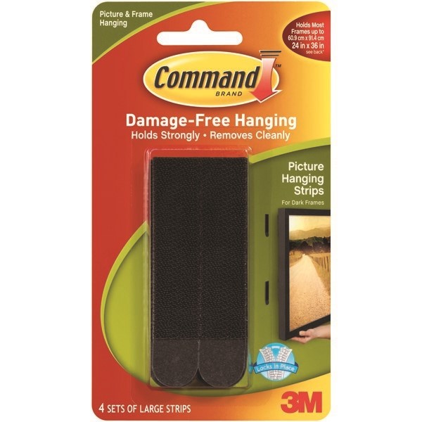 3M 17026BLK Command Adhesive Large Picture Hanging Strips Black Pack 4/17206