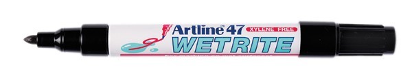 The unique ink formula in the Artline 47 allows for clear marking of wet non-Porous surfaces such as metal, plastic, styrofoam, etc