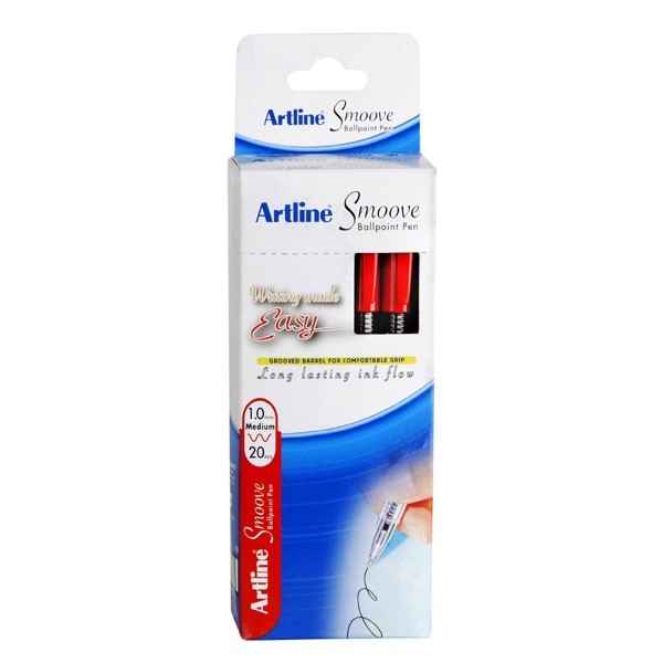 Artline Smoove Ballpoint Stick Medium Red Box 20