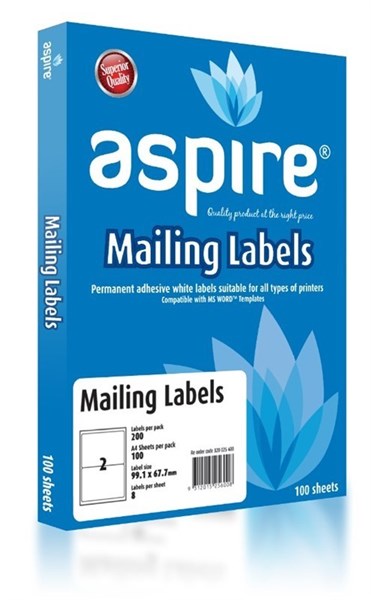 Aspire Address Labels Laser Inkjet 199.6 x 143.5mm 2 Per sheet Pack 100