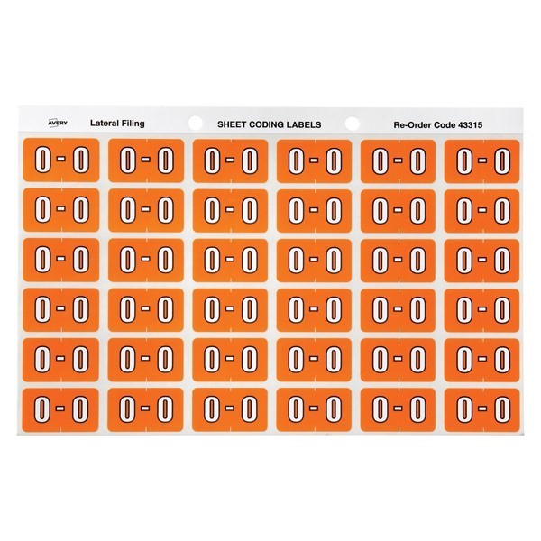 Avery 43315 O Side Tab Colour Coding Labels Orange Pack 180