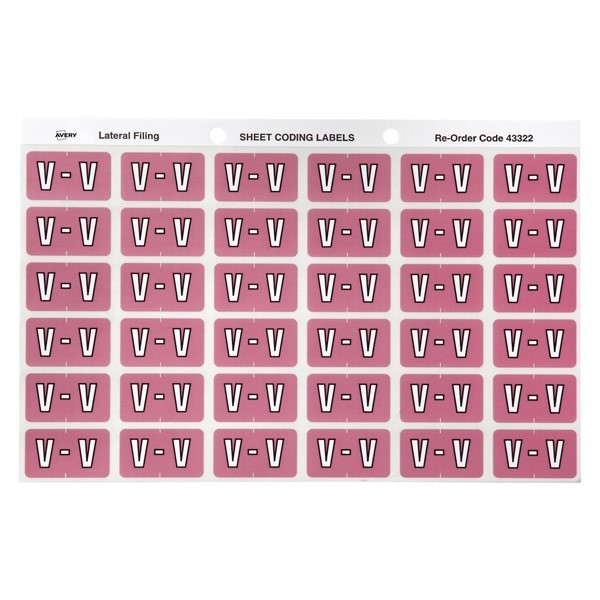 Avery 43322 V Side Tab Colour Coding Labels Mauve Pack 180