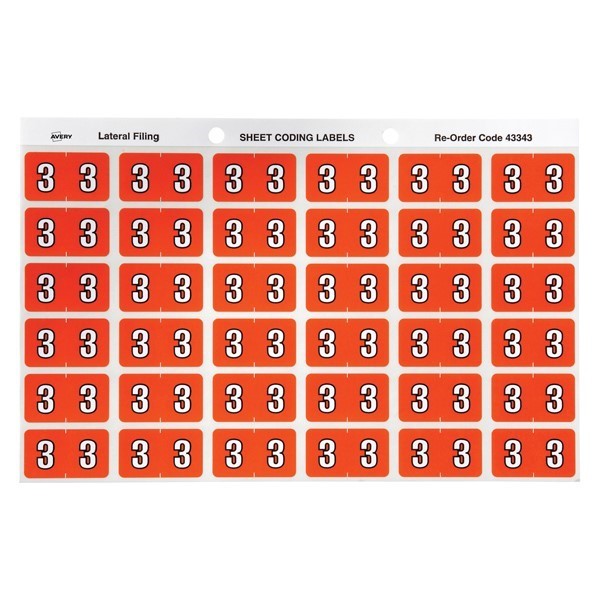 Avery 43343 3 Side Tab Colour Coding Labels Dark Orange Pack 180