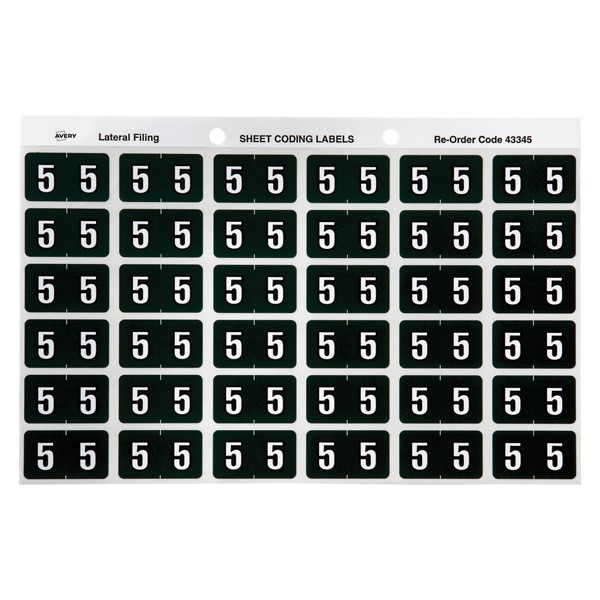 Avery 43345 5 Side Tab Colour Coding Labels Dark Green Pack 180