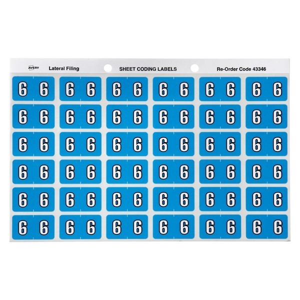 Avery 43346 6 Side Tab Colour Coding Labels Blue Pack 180