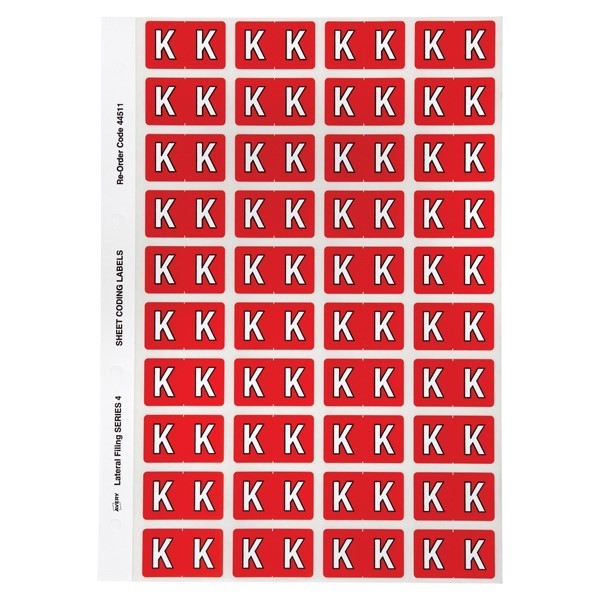 Avery 44511 K Side Tab Colour Coding Labels Red Pack 240