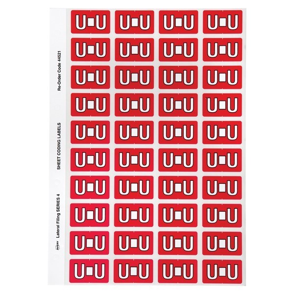 Avery 44521 U Side Tab Colour Coding Labels Red Pack 240