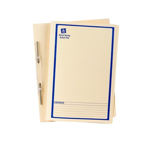Avery 86524 Spiral Spring Action File Buff with Blue Print Foolscap Box 25