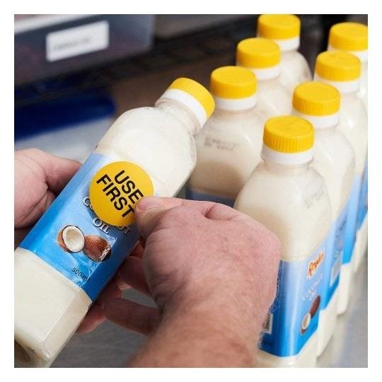 Organise your food items so the Use First is clearly in the front to be selected with this bright visual label