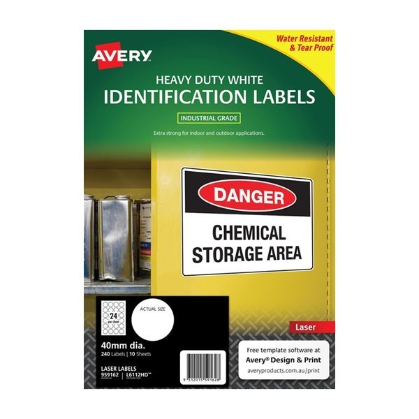 Avery 959162 L6112HD Round Heavy Duty Labels Laser 40mm Diameter 24 Per Sheet Pack 10