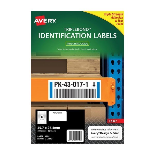 Avery 959220 L6140 TripleBond Identification Labels Laser 45.7 x 25.4mm 40 Per Sheet Pack 10
