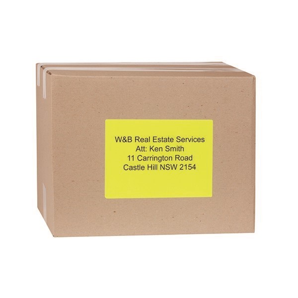 Avery 959405 L7168FY High Vis Shipping Labels Laser 199.6 x 143.5mm 2 Per Sheet Fluoro Yellow Pack 10