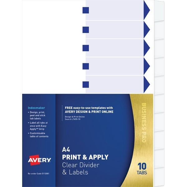 Each pack of Avery IndexMaker comes with dividers, reinforced table of contents page, Easy Apply clear laser and inkjet