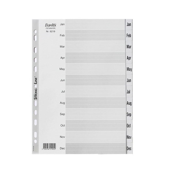Bantex A4 Polypropylene Dividers Jan-Dec Grey
