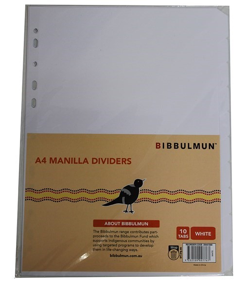 Bibbulmun Manilla Divider A4 10 Tab White (39441000)