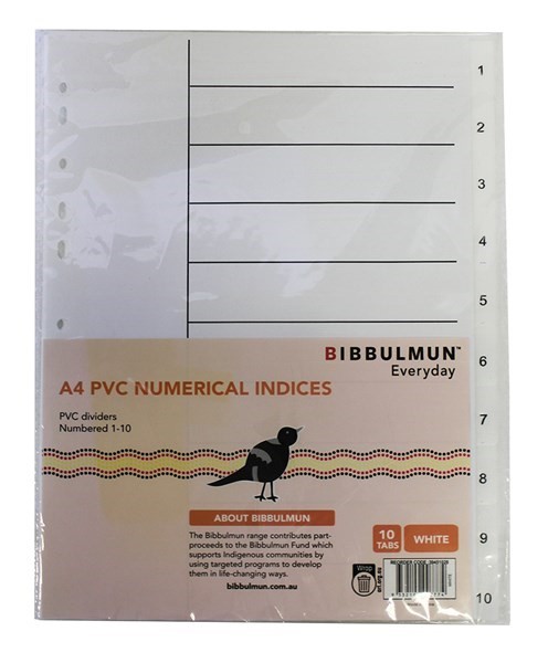 Bibbulmun PVC Divider A4 1-10 Tab White/39441028