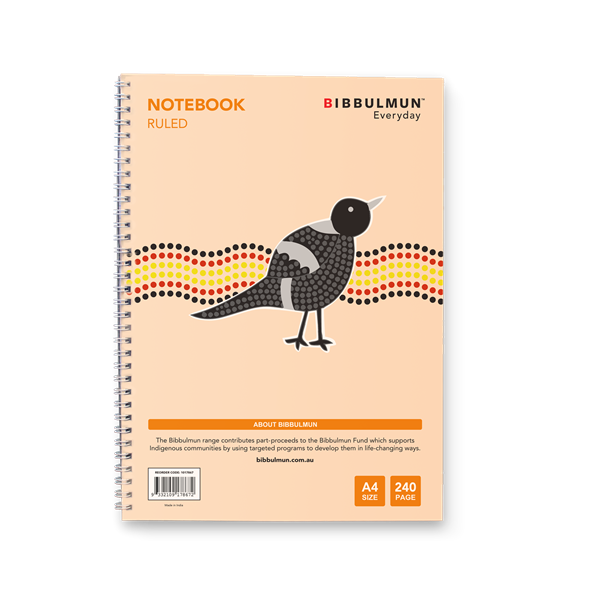 -This spiral bound quality notebook features feint ruled pages and a hard cardboard back cover -Smooth white paper provides you with an exceptional writing experience - The Bibbulmun range contributes part-proceeds to the Bibbulmun Fund which aims to open new possibilities for Aboriginal enterprises.
