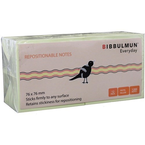 Bibbulmun Sticky Notes 76X76mm Yellow Pack of 12 (14187429)