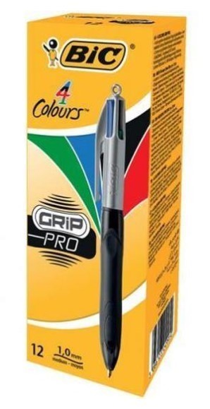 Bic 4 Colour Grip Pro Retractable Ballpoint Medium Pen Black, Blue, Red, Green/9950