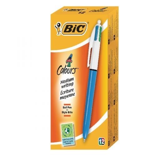 Bic Pen 4 Colour Retractable Ballpoint Fine Black, Blue, Red & Green Box12 (33843)