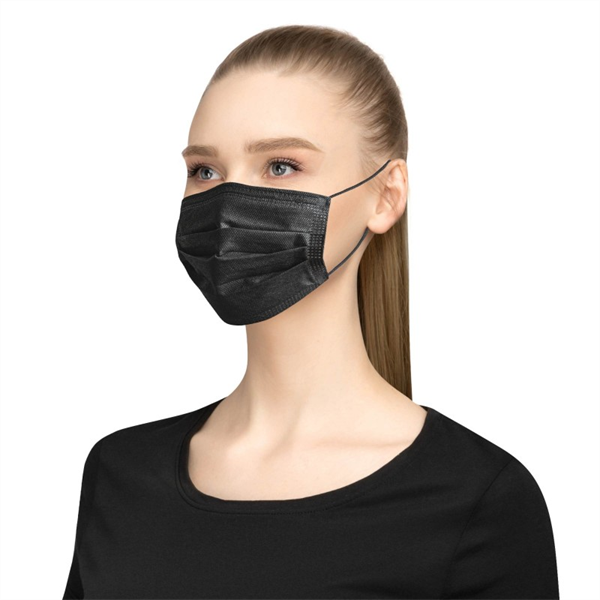 • Three breathable layers • Top layer is non-woven cloth • Filter layer is a melt-blown filter • Bottom layer is non-woven • Standard size fits adults • Comfortable stretchable ear loops • Form Fitting Embedded nose strip • Black Exterior with White Interior • Sold Blank Only • Boxed In Sets Of 50 pieces • Face Masks are latex-free & non-medical.