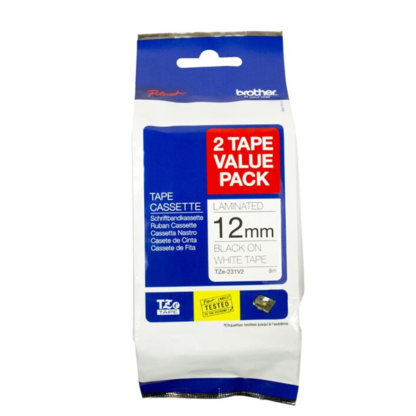 Brother TZE-231V2 P-Touch Tape Black on White 12mm Pack 2