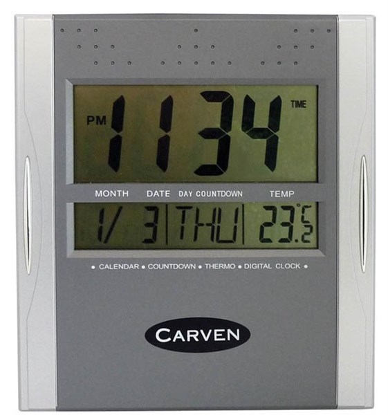 Includes; month, date, day, Displays current temperature (Switchable to c or f) and has an alarm