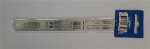 Back of ruler includes printed: conversion table, tap drill table and w.w unf table.