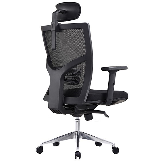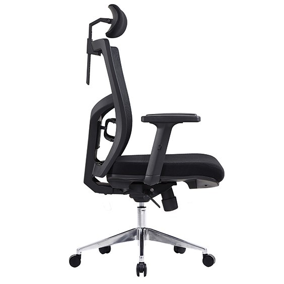 Centro High Mesh Back Clerical Chair with Height Adjustable Arms & Back with 3 Lever Headrest & Chrome Base Black Fabric