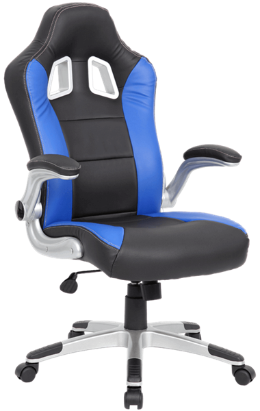 Material: High Grade PU, Plastic, Moulded Foam, Steel Arms / Base: Silver Steel Base with Steel Arms with PU Padding that recline flat with the back to allow closer user to keyboard surface Covering: Red & Black High Grade PU or Blue & Black High Grade PU Features: High Back, Adjustable Seat Height, Comfortable Headrest, Free Float or Lock Mechanism, Padded Arms, Foldback Arms, Tension Adjustment