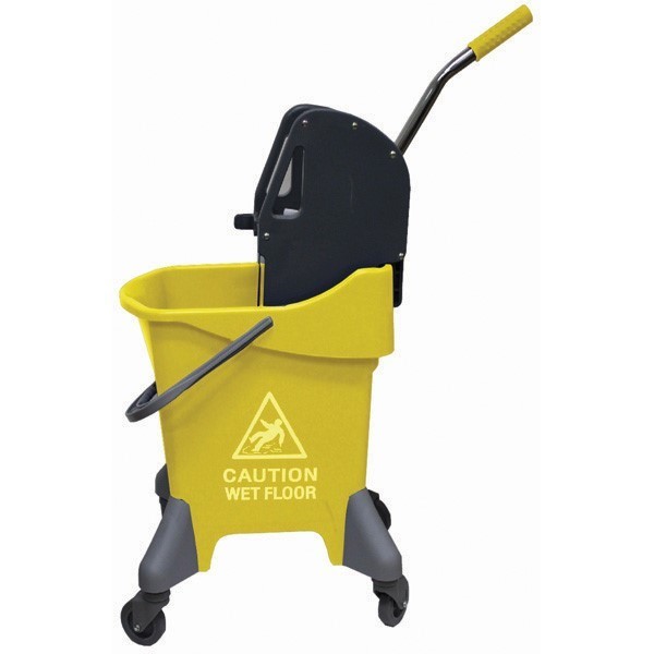 * These sturdy plastic buckets have a metal foot pedal and wringer mechanism to endure every day use