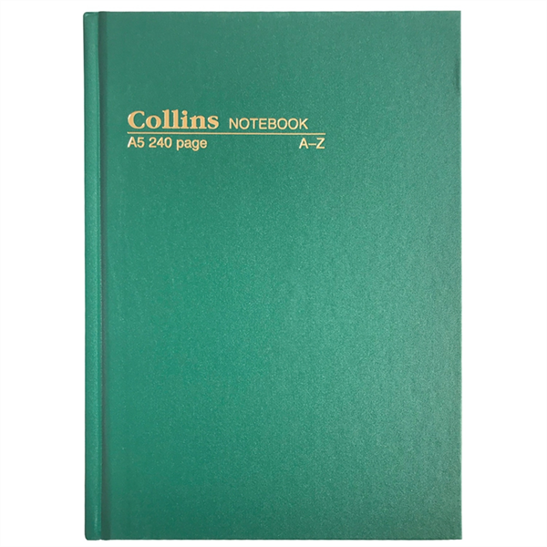 Collins 5604 Hard Cover A5 Note Book A-Z 240 Page Green
