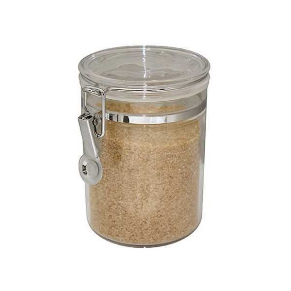 Durable and versatile, round airtight canisters made from strong, clear acrylic material with chrome clips for sealing