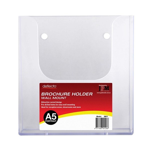 Deflecto 39611 Brochure Holder A5 Single Tier Wall Mount Clear