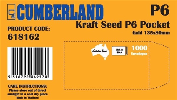 Envelope 618162 Moist & Seal No 6 Seed 135 x 80mm Kraft Box 1000