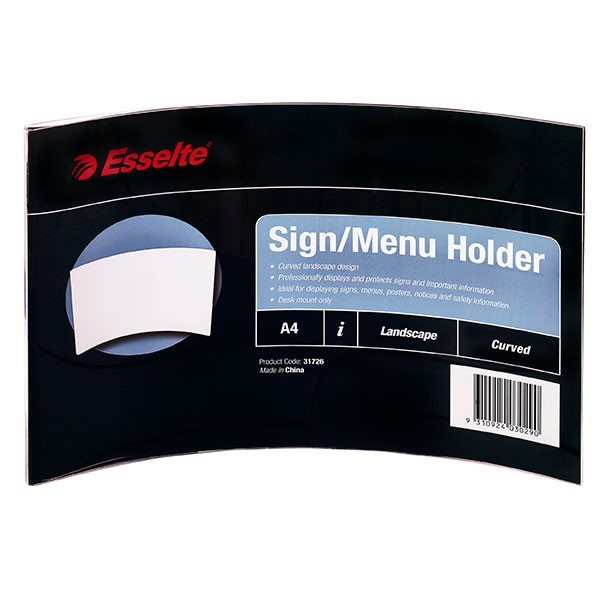 Esselte Menu/Sign Holder 31726 Curved A4 Clear (Each)