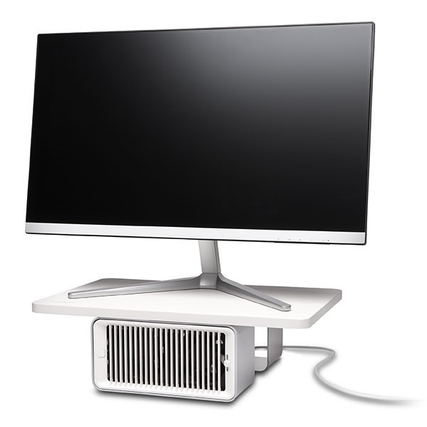 The kensington coolview wellness monitor stand with desk fan combines the ergonomic benefits of raising your monitor height with the wellness benefits of circulating airflow